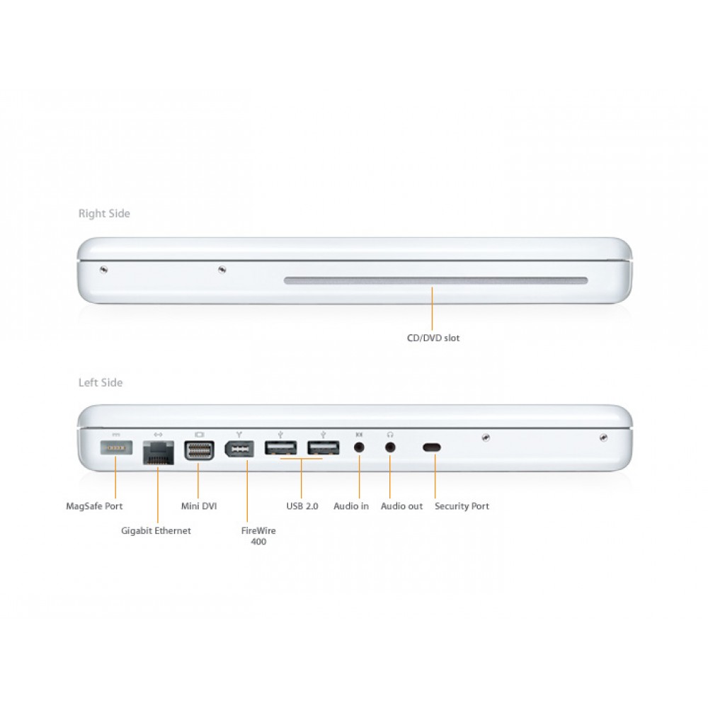 The new MacBook now comes with 1GB of memory standard and larger hard drives for the entire line perfect for running more of your favorite applications and storing growing media collections.